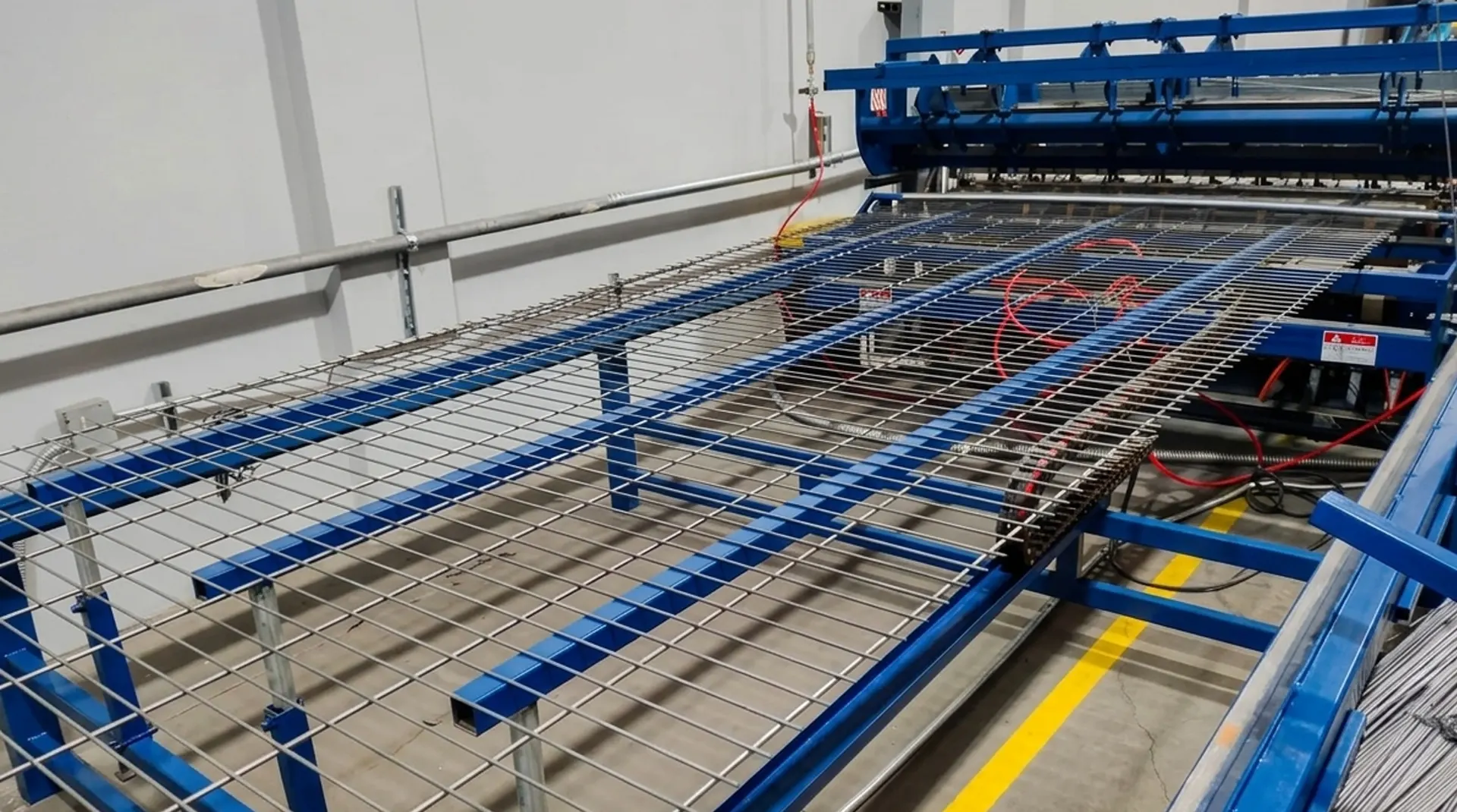 Producción de paneles de malla metálica utilizados en almacenamiento, protección industrial y estructuras metálicas.